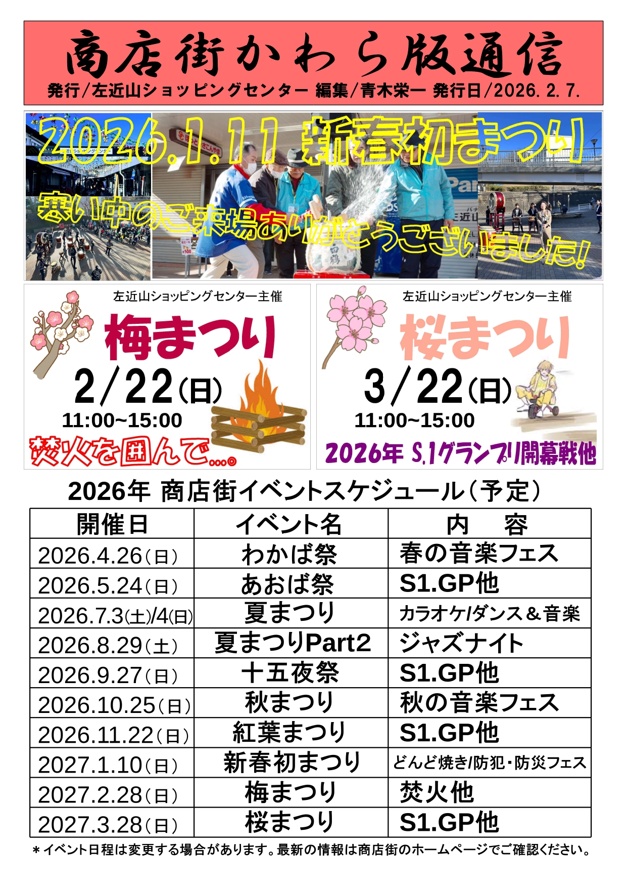 2/22・3/22・4/26~◆左近山ショッピングセンターのおまつり/年間予定 (02/12)